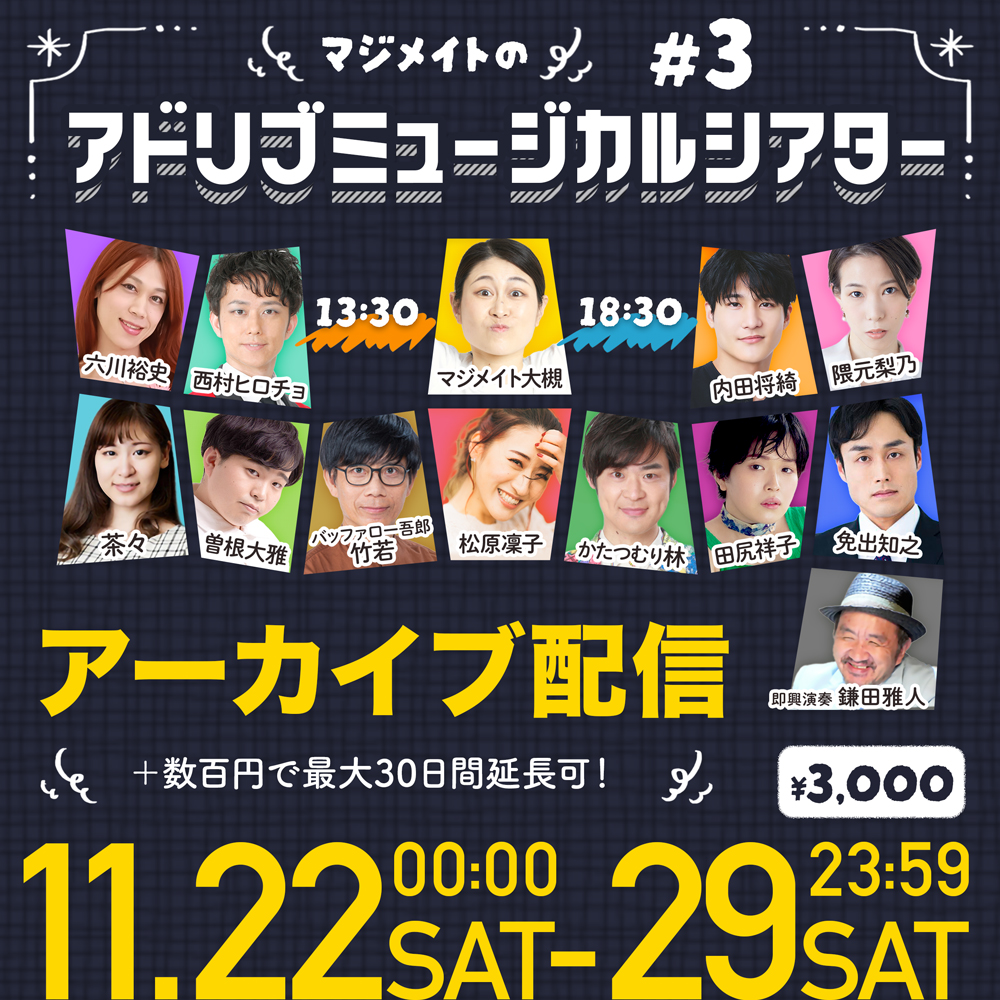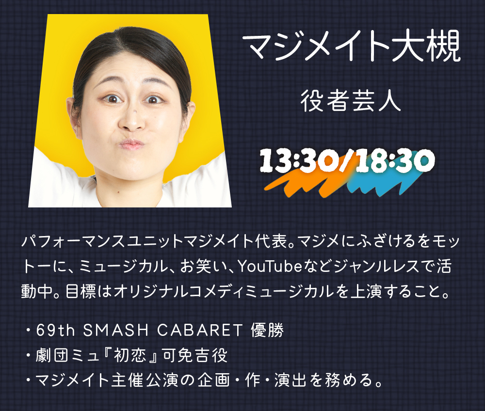 出演:マジメイト大槻、六川裕史、鶴岡政希、茶々、坂田隆一郎、隈元梨乃、ケンケン