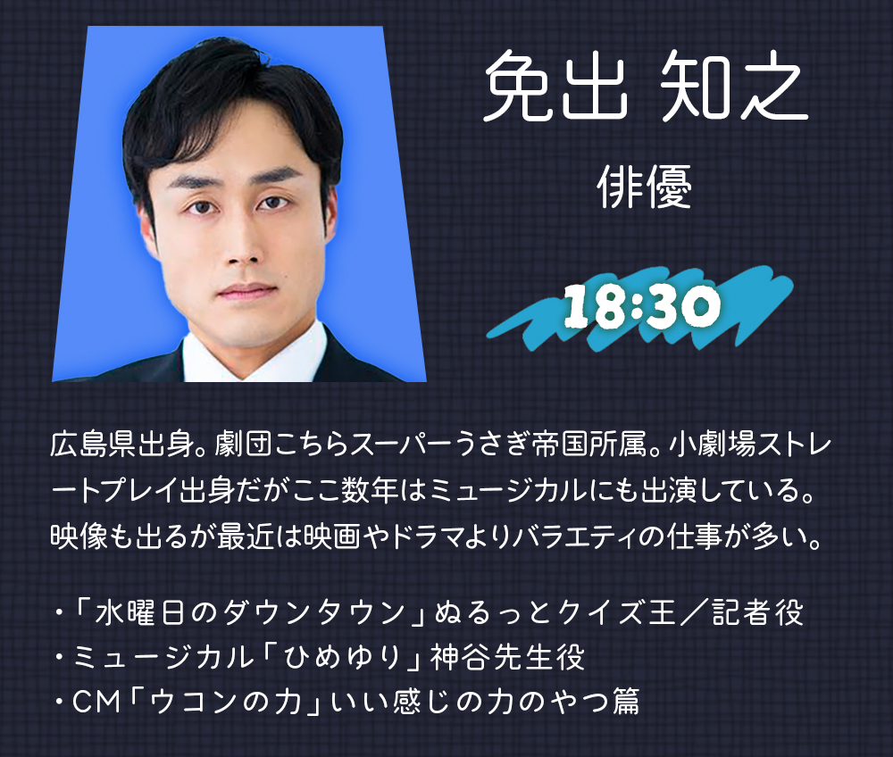 マジメイト大槻、松原凜子、六川裕史、曽根大雅、茶々、西村ヒロチョ、バッファロー吾郎 竹若、免出知之、田尻祥子、隈元梨乃、かたつむり林、鎌田雅人
