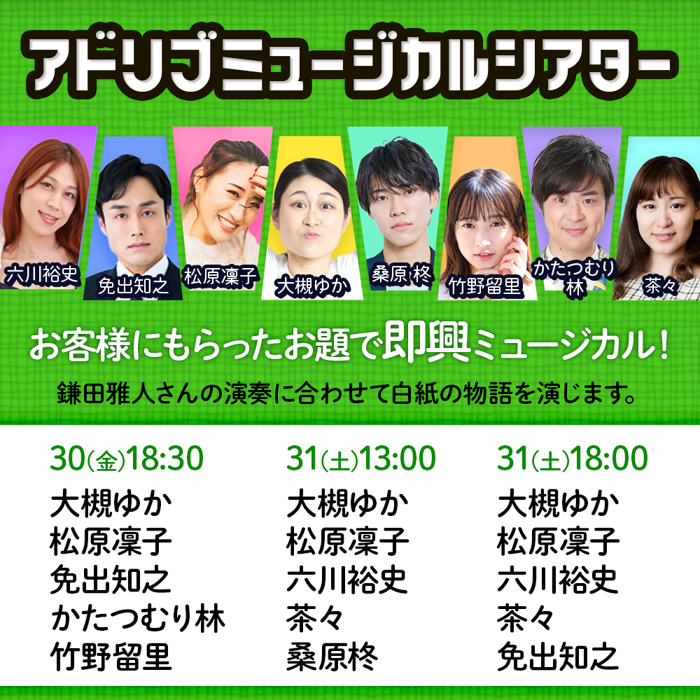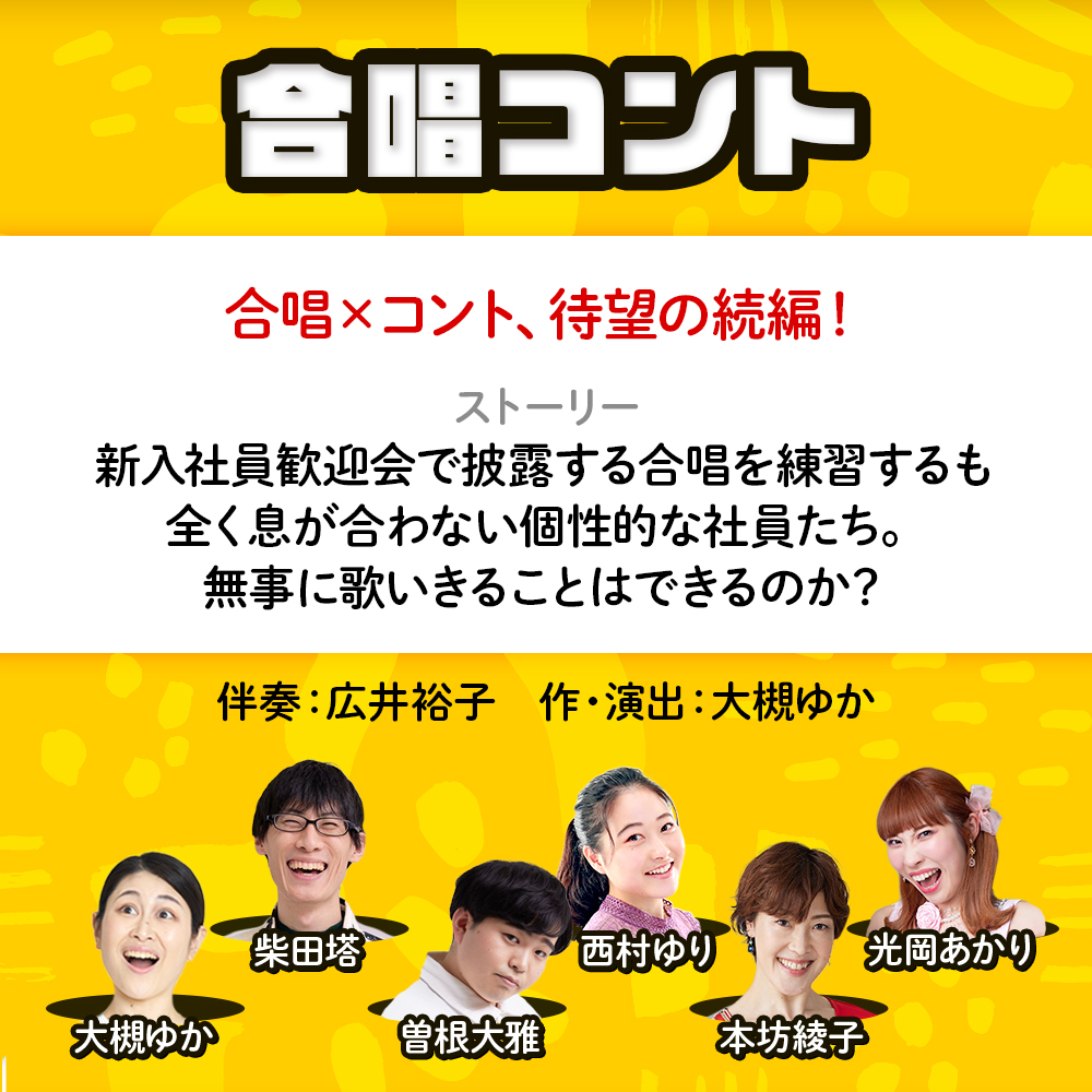 新作ミュージカル・合唱コント・アドリブミュージカルシアター・ものまねの4本立て!